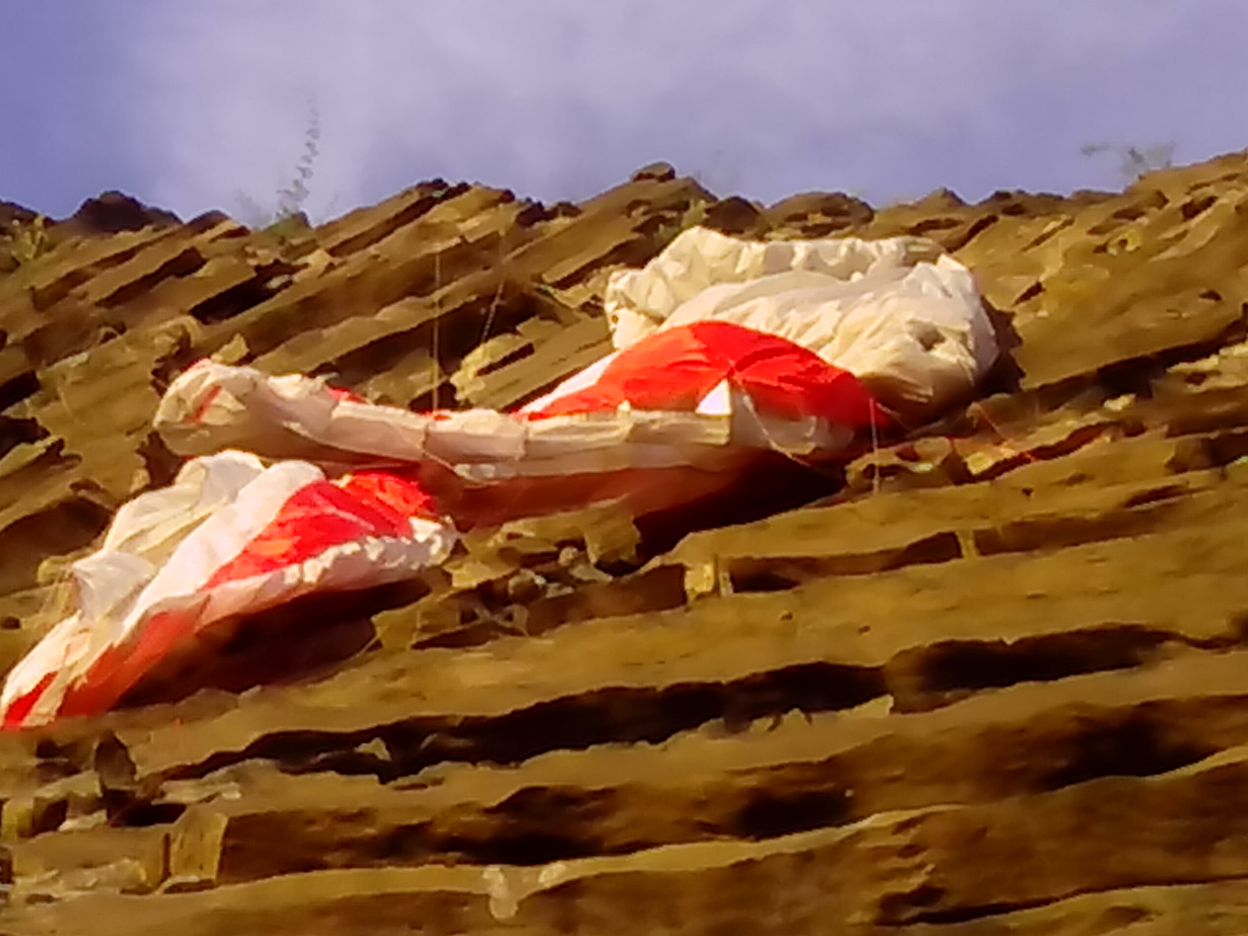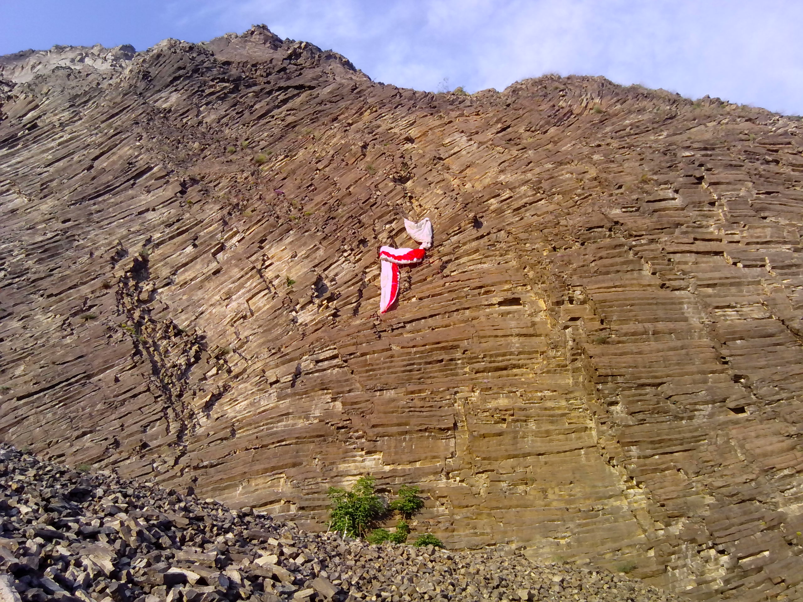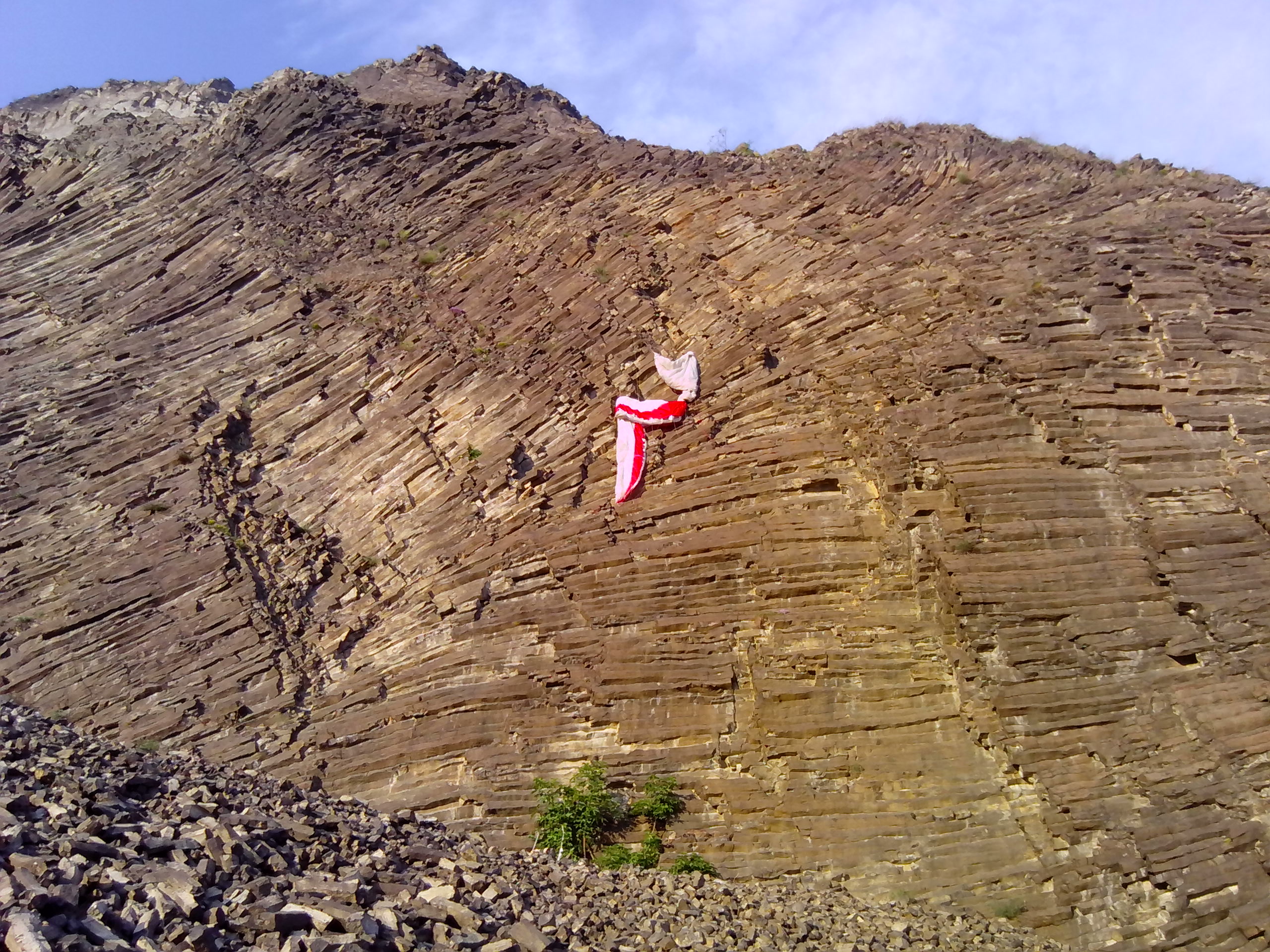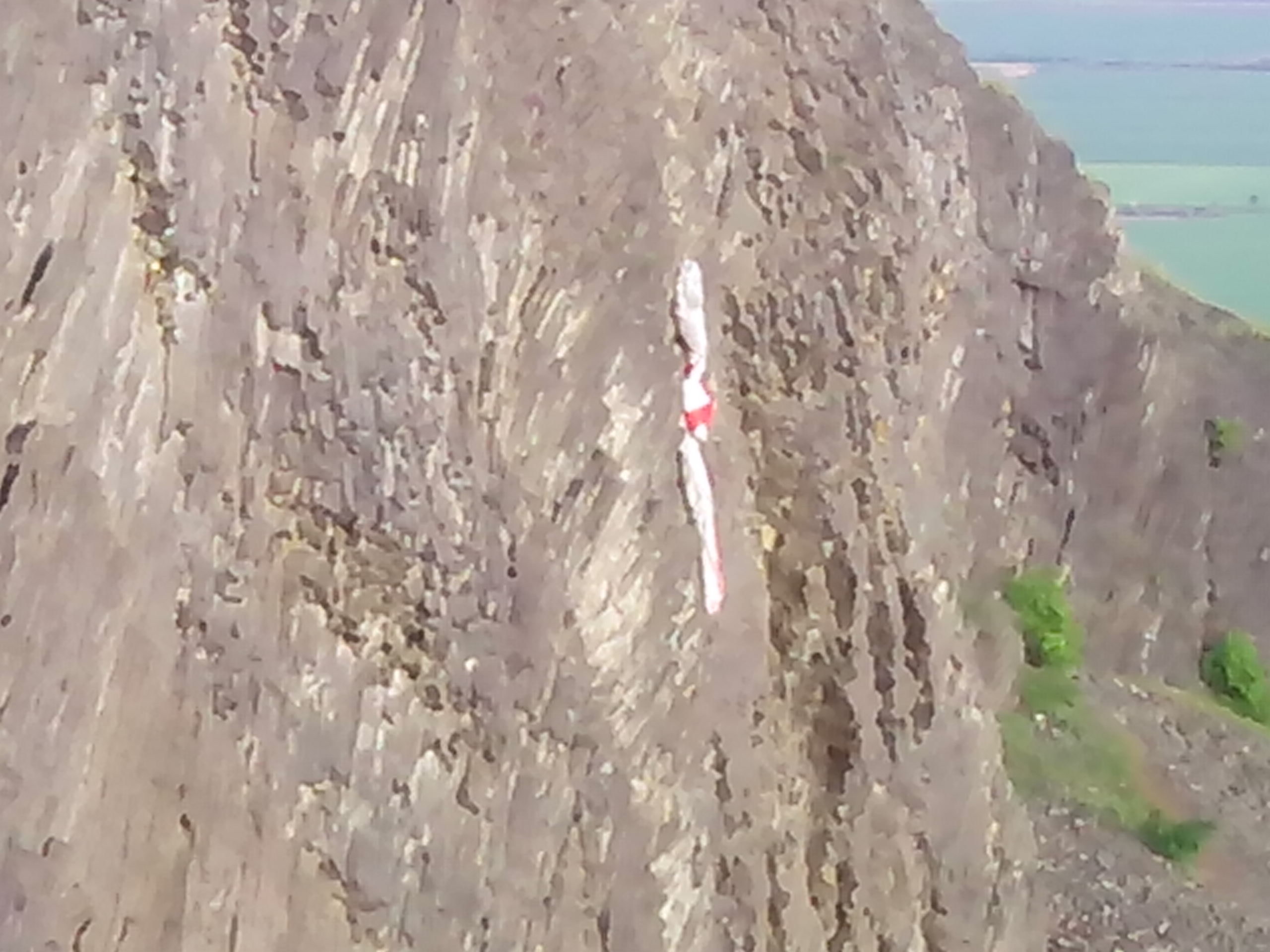 Zachycený padák na stěně Radobýlu